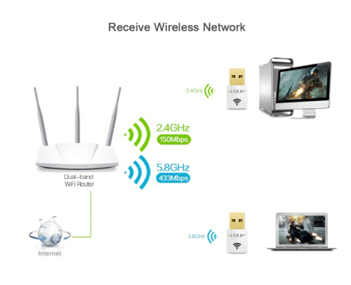 - Адаптер беспроводной Edup Wi-Fi USB 600 Мбит (EP-AC1619)