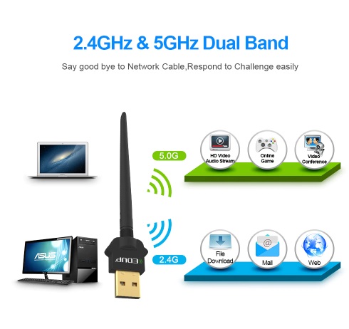 - Адаптер беспроводной двухдиапазонный Edup (EP-AC1669) Wireless 11AC USB Adapter Wi-Fi Dual Band 1300Mbps