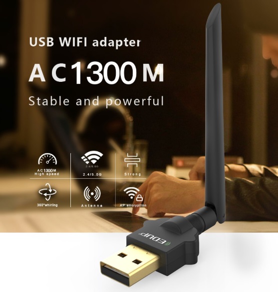 - Адаптер беспроводной двухдиапазонный Edup (EP-AC1669) Wireless 11AC USB Adapter Wi-Fi Dual Band 1300Mbps