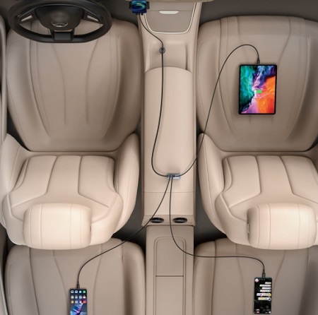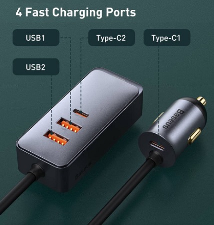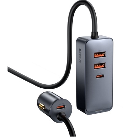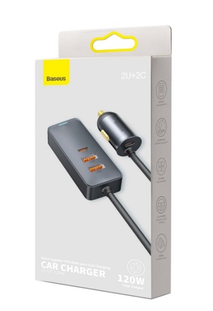 - Автомобильное зарядное устройство Baseus Share Together PPS multi-port Fast charging car charger with extension cord 120W 2U 2C (CCBT-A0G)