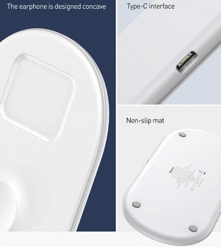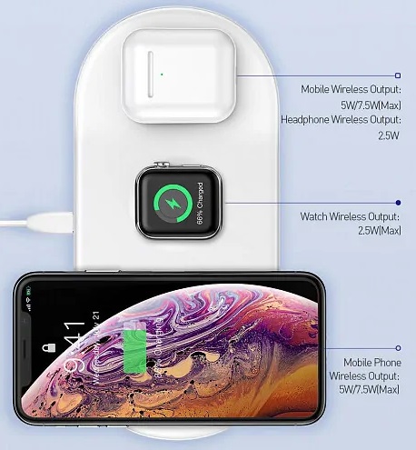 - Беспроводное зарядное устройство Baseus Smart 3in1 Wireless Charger For Phone Watch Pods 18W (WX3IN1-C02)