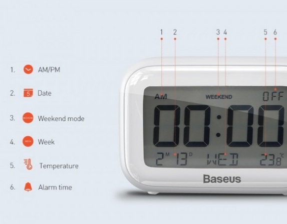 - Настольные часы с будильником Baseus Subai Clock (ACLK-B02)