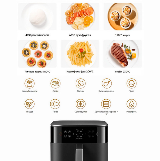 - Аэрогриль - аэрофритюрница Xiaomi Smart Double Stack Air Fryer 12L (MAF-DS1201)