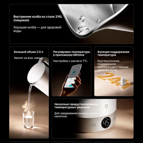- Чайник электрический умный Xiaomi Mijia Smart Kettle 3 Pro 2L (MJJYSH03YM) CN