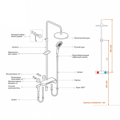 - Душевая стойка с термостатом Xiaomi Mijia Temperature Control Shower Head S1 (MJKWLYHS01DB)