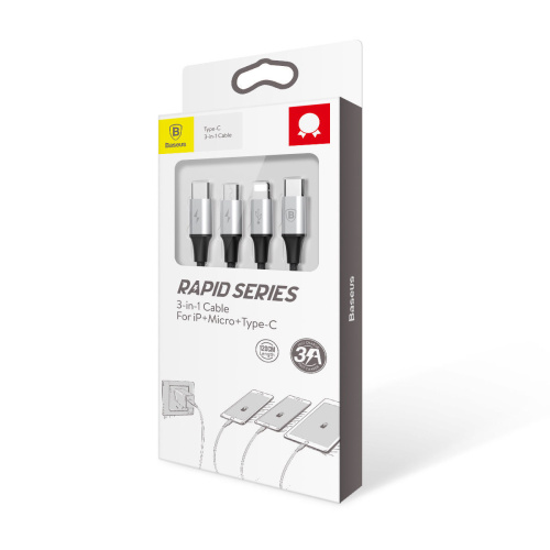 - Кабель Baseus Rapid Series 3 in 1 Type-C - Micro USB - Lightning - Type-C 1.2м