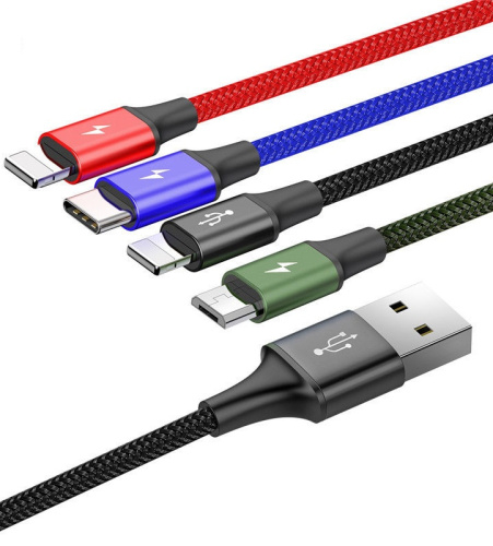 - Кабель Baseus 4-in-1 Rapid Series Micro USB - Type-C - Lighting (х2) (CA1T4-A01) 1.2м
