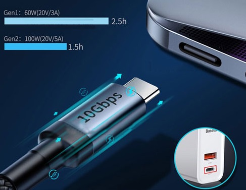 - Кабель Baseus Cafule Series PD3.1 60W Cable 1м 5Gbps (CATKLF-RV1, CATKLF-RG1)