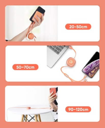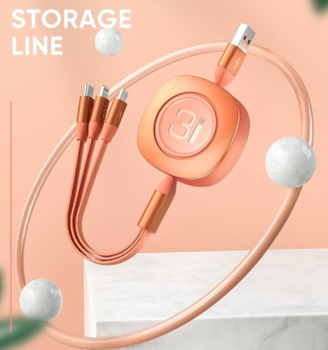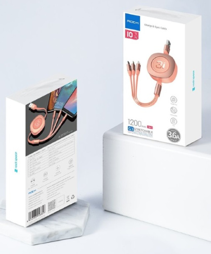- Кабель Rock G3 Stretchable Cable 3 in 1 телескопический "рулетка" (RCB0738) 120 см.