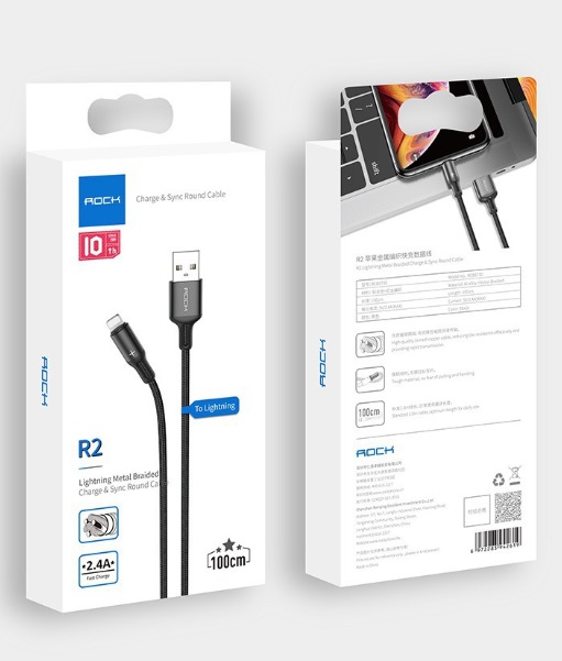 - Кабель Rock R2 USB - Lightning Metal Braided Charge & Sync Round Cable (RCB0730) 2A 2m