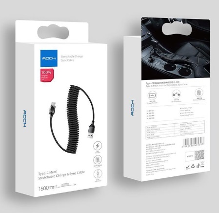- Кабель ROCK Stretchable Charge Synk Cable USB - Lightning 1.5М RCB0656