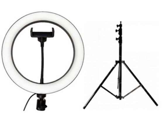- Набор: Кольцевая светодиодная лампа с держателем (25.5 см) + Штатив 210 см.