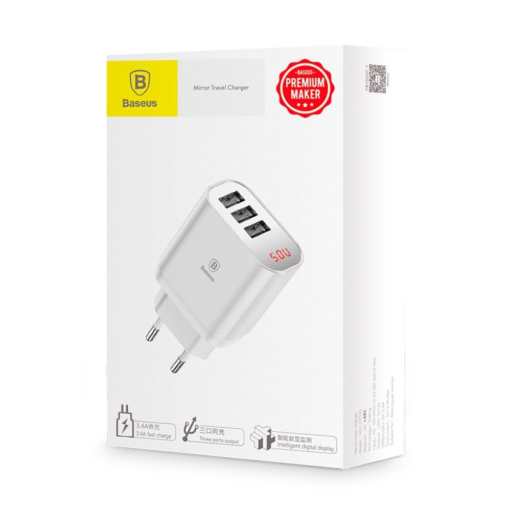 - Сетевой блок питания Baseus Mirror Travel Charger 3 USB 3.4А(CCALL-BH01, CCALL-BH02)