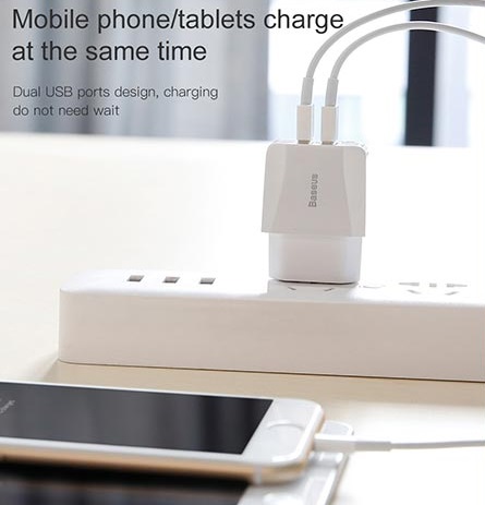 - Сетевое зарядное устройство Baseus GS-518 Mini Dual-U Charger (EU) 2 USB, 2.1A, Quick Charge
