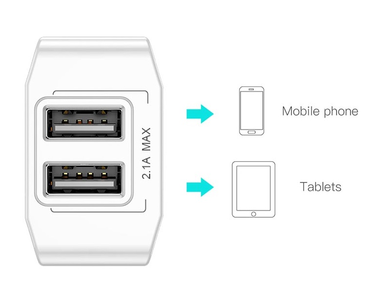 - Сетевое зарядное устройство Baseus GS-518 Mini Dual-U Charger (EU) 2 USB, 2.1A, Quick Charge