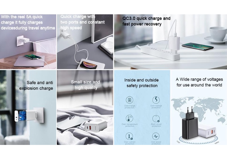 - Сетевое зарядное устройство Baseus Speed PPS Quick Charger - USB, Type-C (CCFS-C01, CCFS-C02) QC3.0