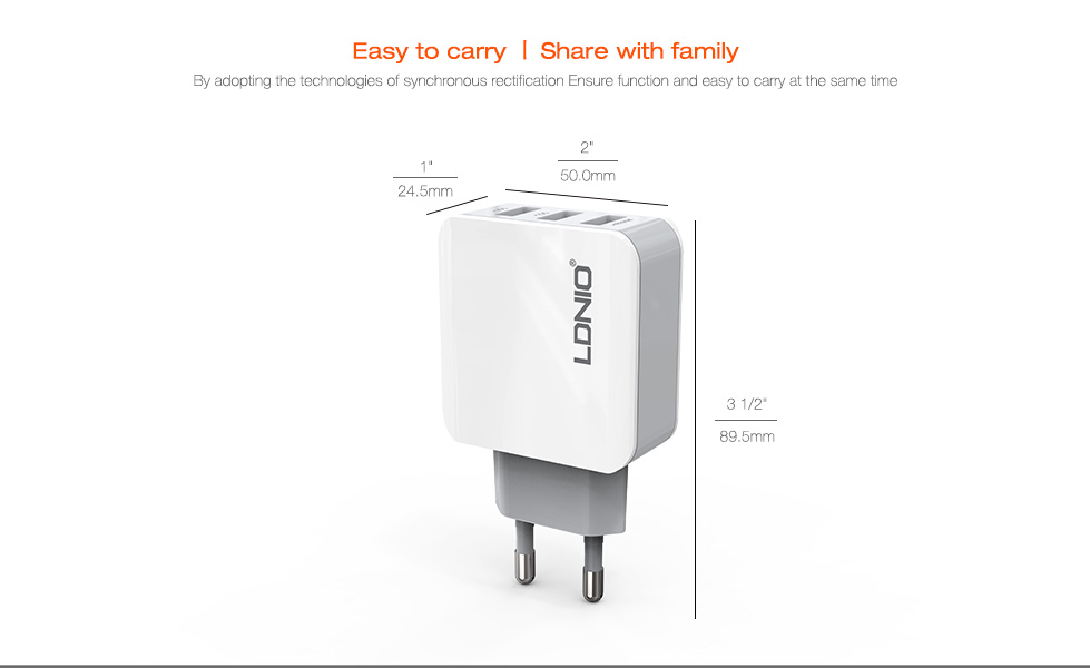 - Зарядное устройство Ldnio 3 USB 3.1A (A3301)