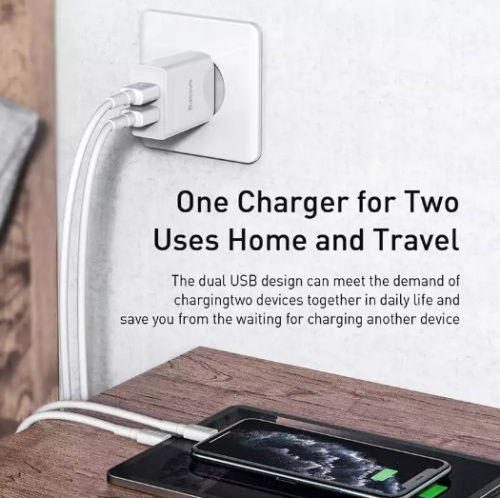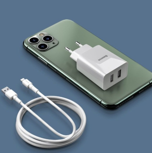 - Сетевое зарядное устройство Baseus DZ-HW Speed Mini Dual U Travel Charger 10.5W Charging Sets (EU) с кабелем USB For iP 2.4A 1m (TZCCFS-R01, TZCCFS-R02)