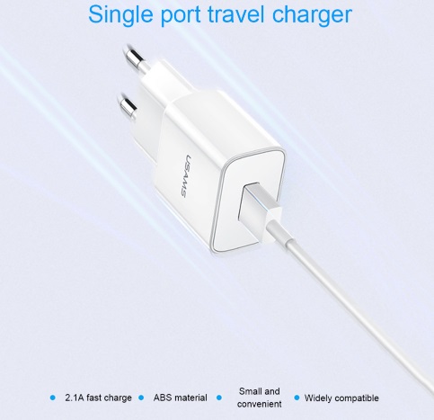 - Сетевое зарядное устройство USAMS US-CC060 T11 Single Port USB Travel Charger