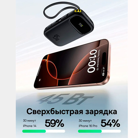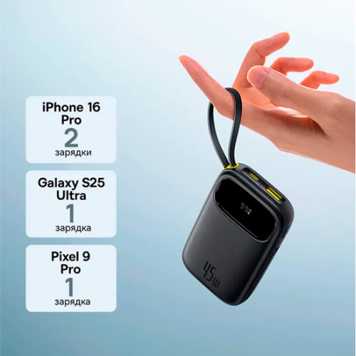- Внешний аккумулятор Baseus EnerFill FC31 Qpow 3 Digital Display Power Bank with USB-C+iP Cables 10000mAh 45W (E0028C01)